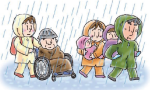 お年寄りや子ども、病気の人は、早めの避難が必要です。近所のお年寄りや子ども、病気の人などの避難に協力しましょう。