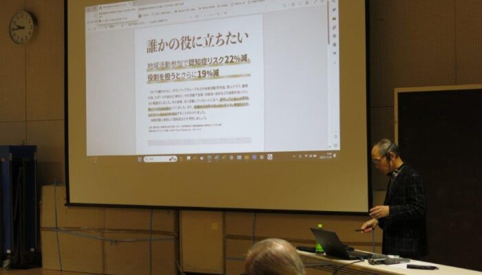自助、共助の重要性。先ず自助、それには健康な身体を具える。近隣との顔の見える関係づくり「近助」をも考える。