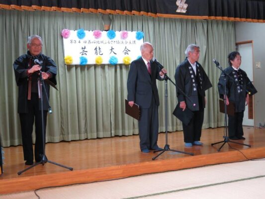 コロナ感染も収まり、令和4年度、令和5年度と芸能大会を実施してきました。昨年の芸能大会の出演者、観客も増え出演者と観客が一体となり歌や踊り楽しみ有意義な時間を過ごしました。